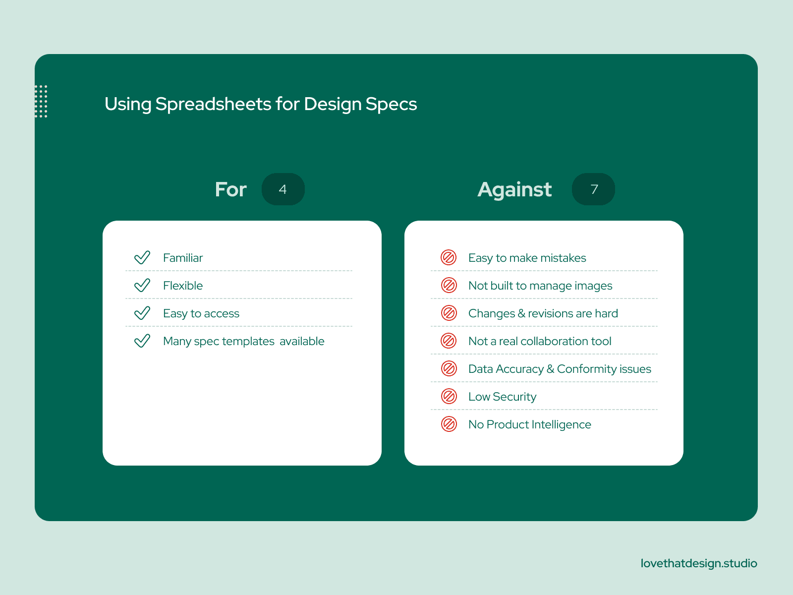 We ran a survey with different design firms to understand why they use spreadsheets for specifications. Our findings are below. While spreadsheets are a useful way to start – they are clearly not a good option for most projects.