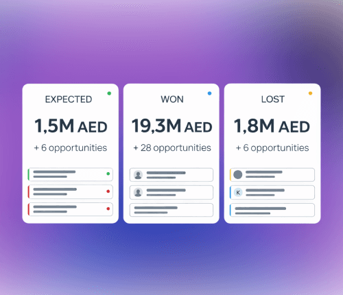 Real-time view of pipeline value, conversion rates, and sales performance. Custom dashboards and reporting widgets replace the weekly "please update the Excel" ritual entirely. Data your whole leadership team can actually read — without a translator.